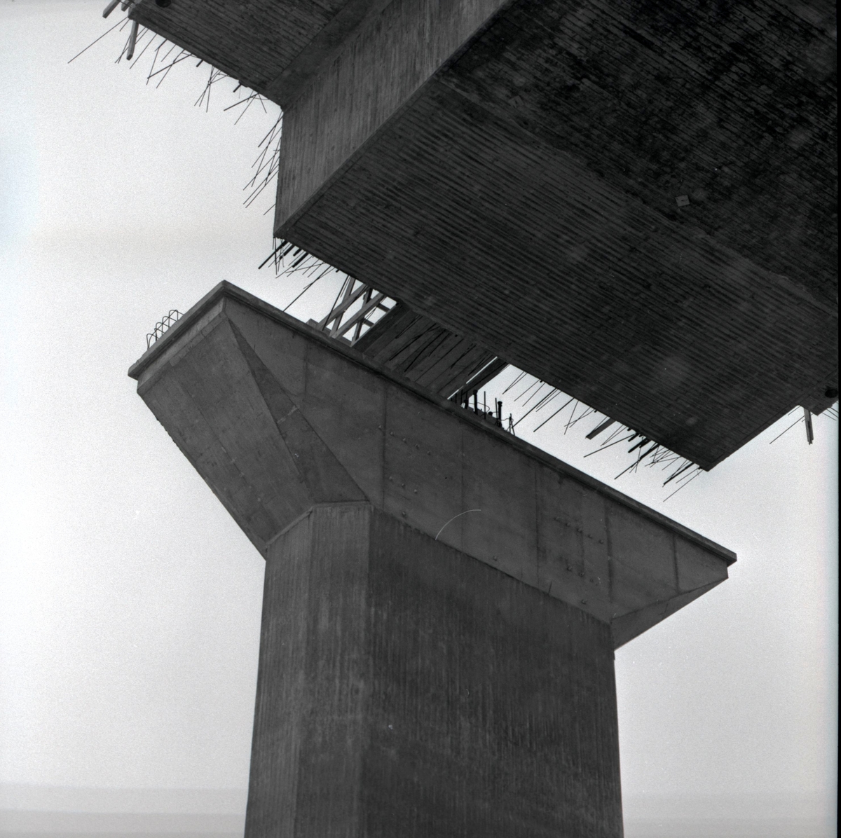 Från byggandet av Ölandsbron. Momentet innan vägbanan når en bropelare. Det gällde att alla uträkningarna stämde!