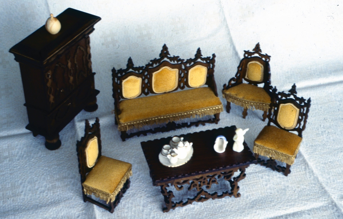 Lärarinnan Stina Berminges dockmöbler som hon gjort med framlidne maken och med Jan Ohlsson.