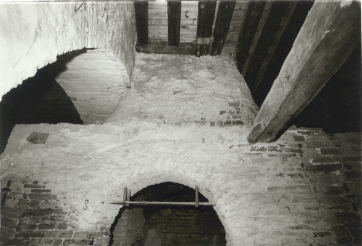 Bottenvåningen, östra längan rum 43 - Kungsköket i Kalmar slott. Främre muren från utsidan, övre delen.
