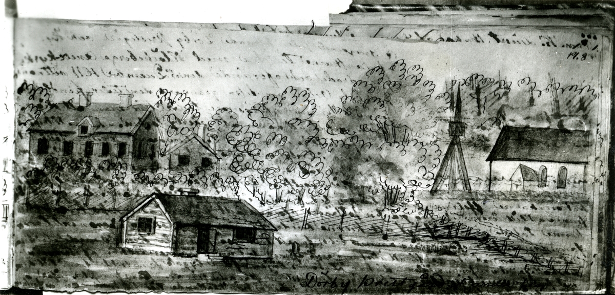 Skissboksanteckningar av fröken Katarina Elisabeth Sylvander(1798-1887), dotter av president Josua Sylvander. Ur skissböcker tillhöriga fru Wedin, Blomstermåla, dtr av adj. Volmar Sylvander. Dörby prostgård 1871.