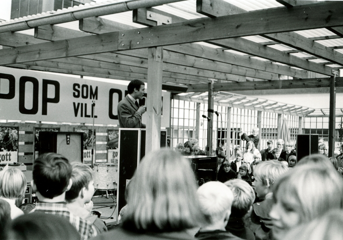 Pop som vill opp, musikevenemang på takterassen på Domusvaruhuset i kv. Åldermannen, Kalmar, 1970.