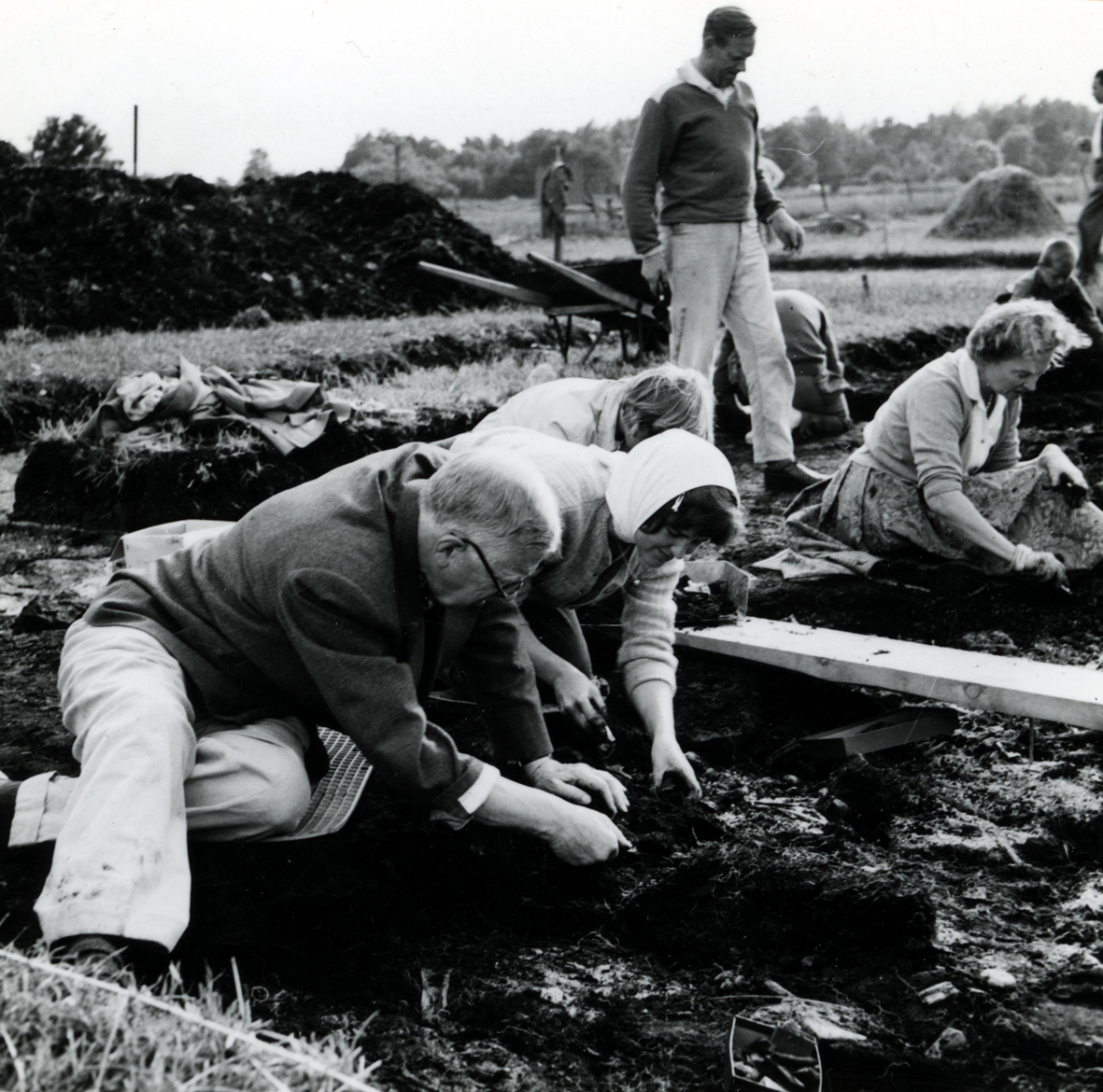 Kung Gustaf VI Adolf, som var en kunnig amatörarkeolog, deltog vid utgrävningarna av Skedemosse.