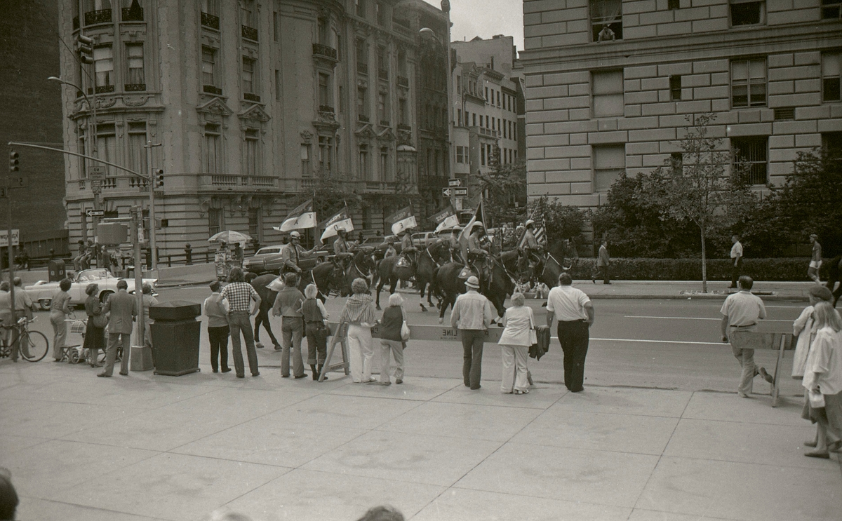 Bild tagen vid resa till USA i september 1977, då var det de dövblindas världskongress, den första Helen Keller-konferensen. En parad med ridande polis.