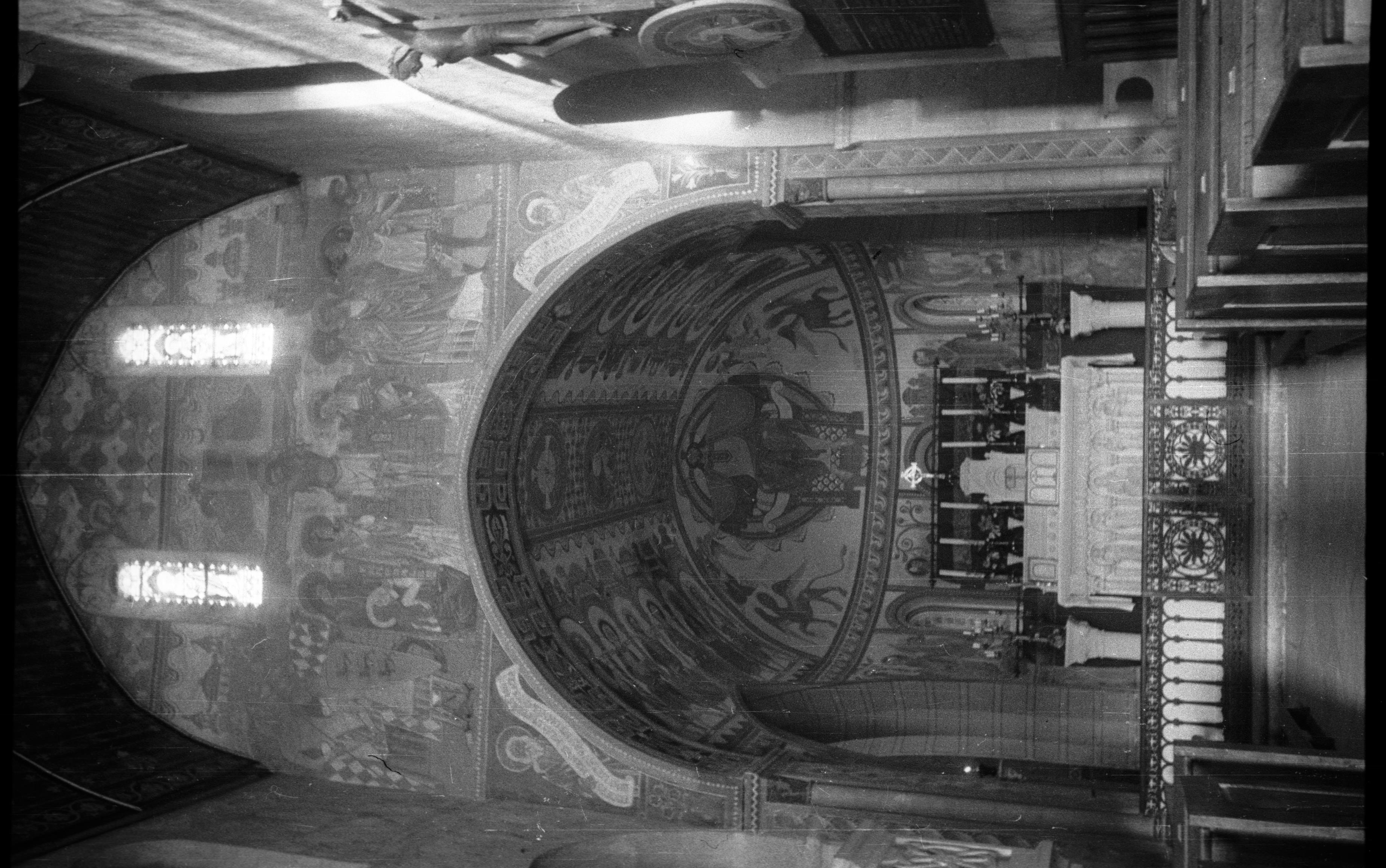 Poncé sur le Loir. Interiör mot koret med fresker.