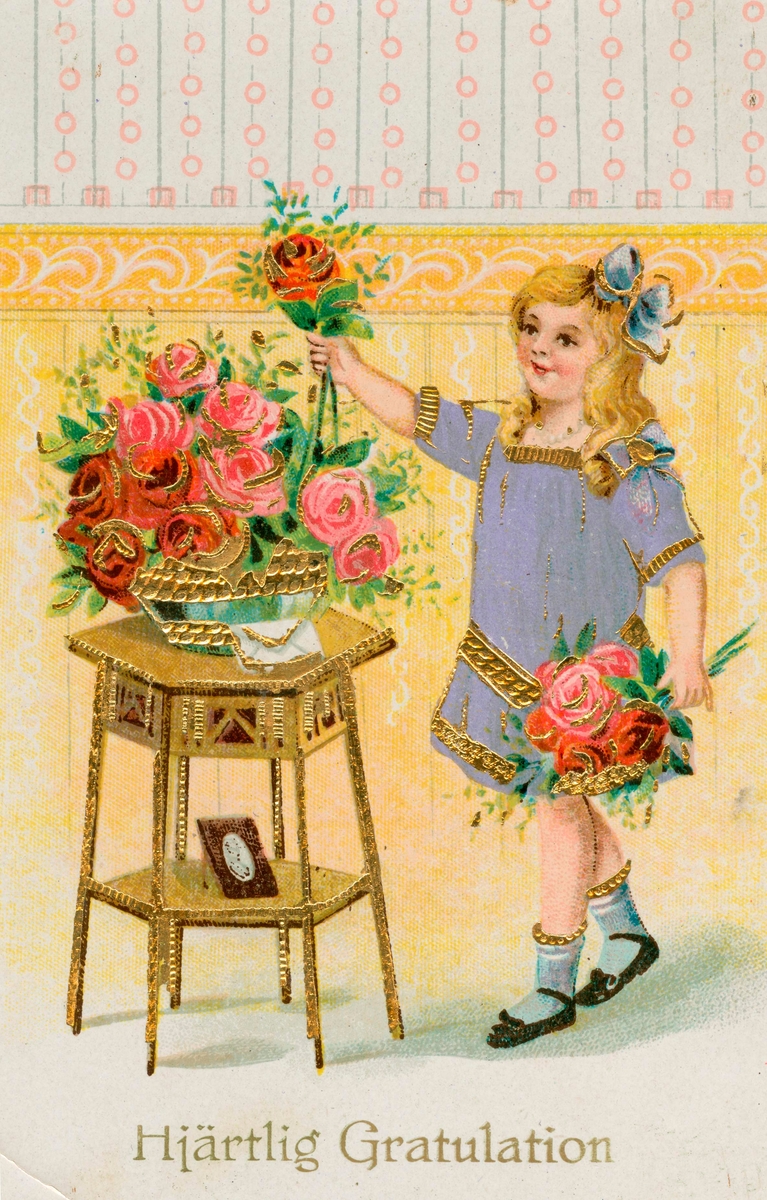 Ett gratulationskort till Karin Andersson, Odengatan 11, Kalmar från moster Nanny.