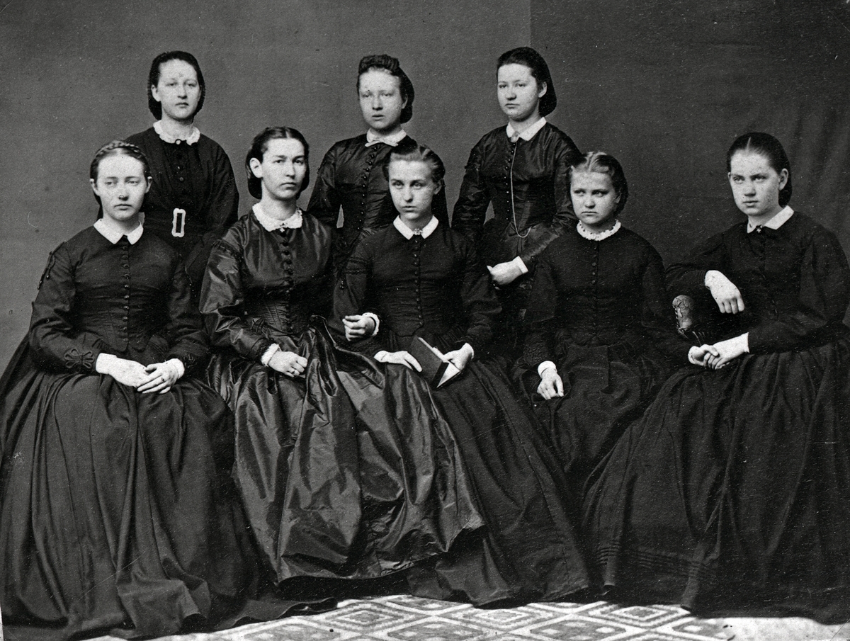 Gruppbild på elever, Rostad omkring 1870. Fotografi ur fröken Natalia Uddenbergs sterbhus 1931.