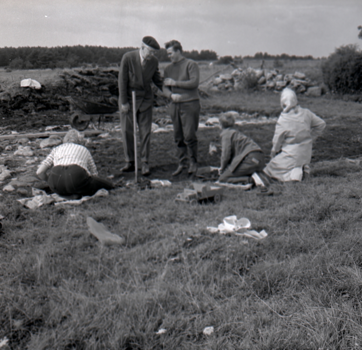 Kung Gustaf VI Adolf med Ulf Erik Hagberg och några andra som gräver vid Skedemosse.