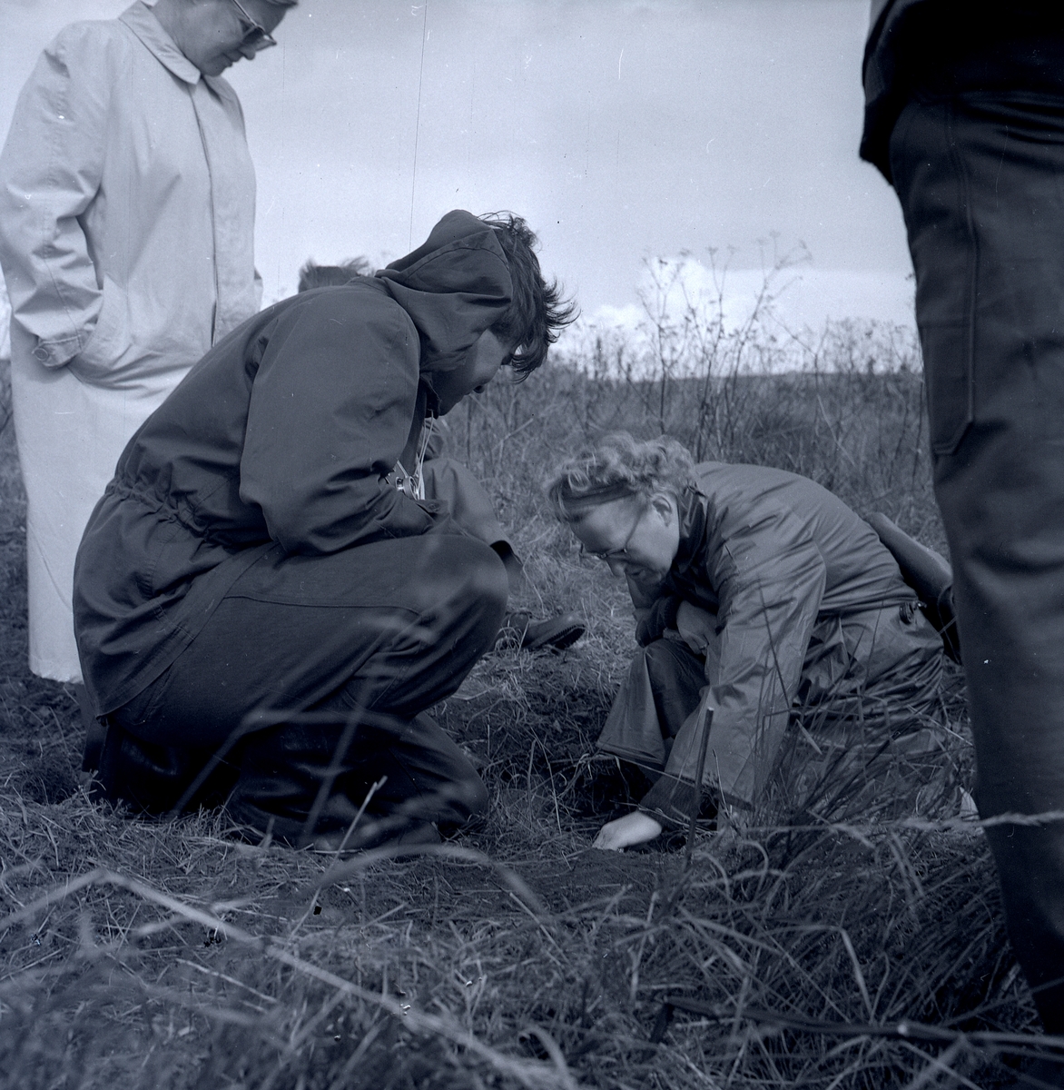 Dr. Ragnhild Boström och Ulf Erik Hagberg i Kårehamn vid en arkeologisk undersökning, juli 1962.