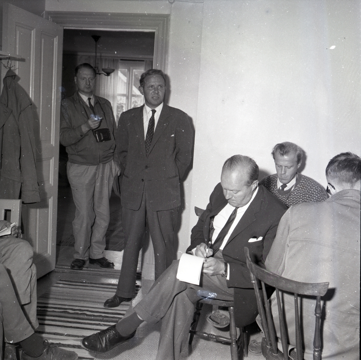 Görans Johansson inför rätta för bränderna på Öland. Journalister antecknar.