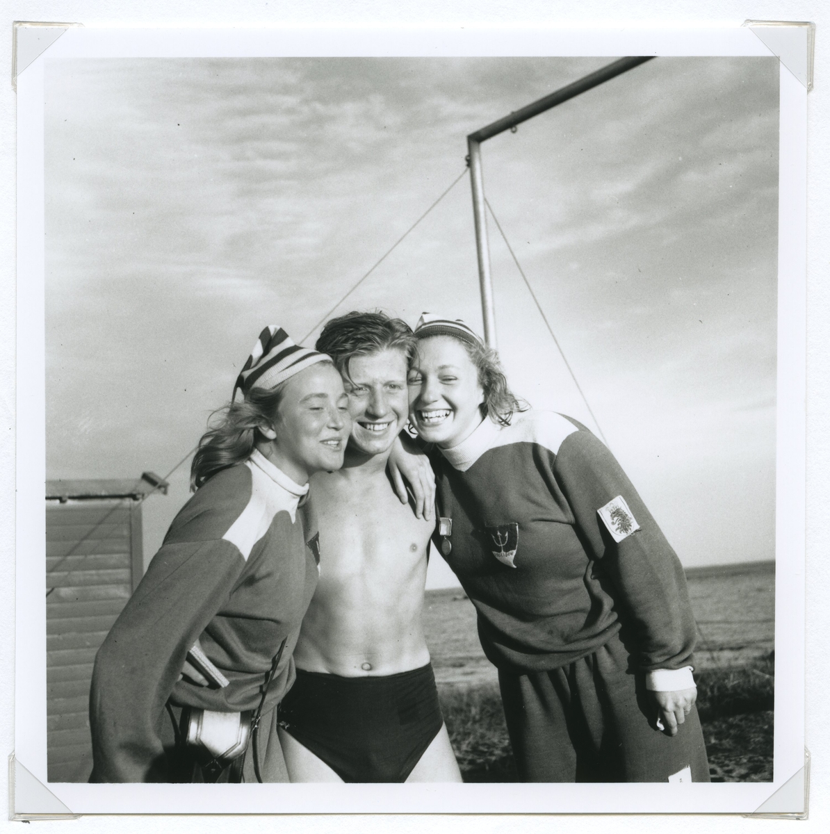 Tre deltagare från SM i simning, som 1946 hölls vid Långviksbadet i Kalmar.