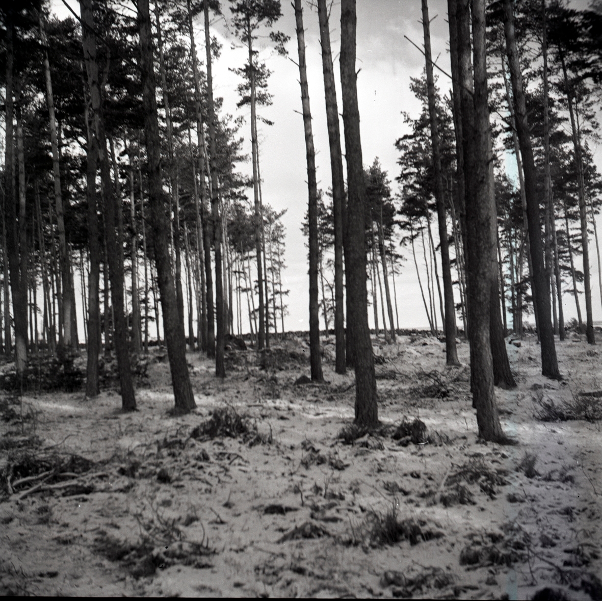 Titel: Ekerums gård, utsikt över Solhöjden vårvintern 1957.