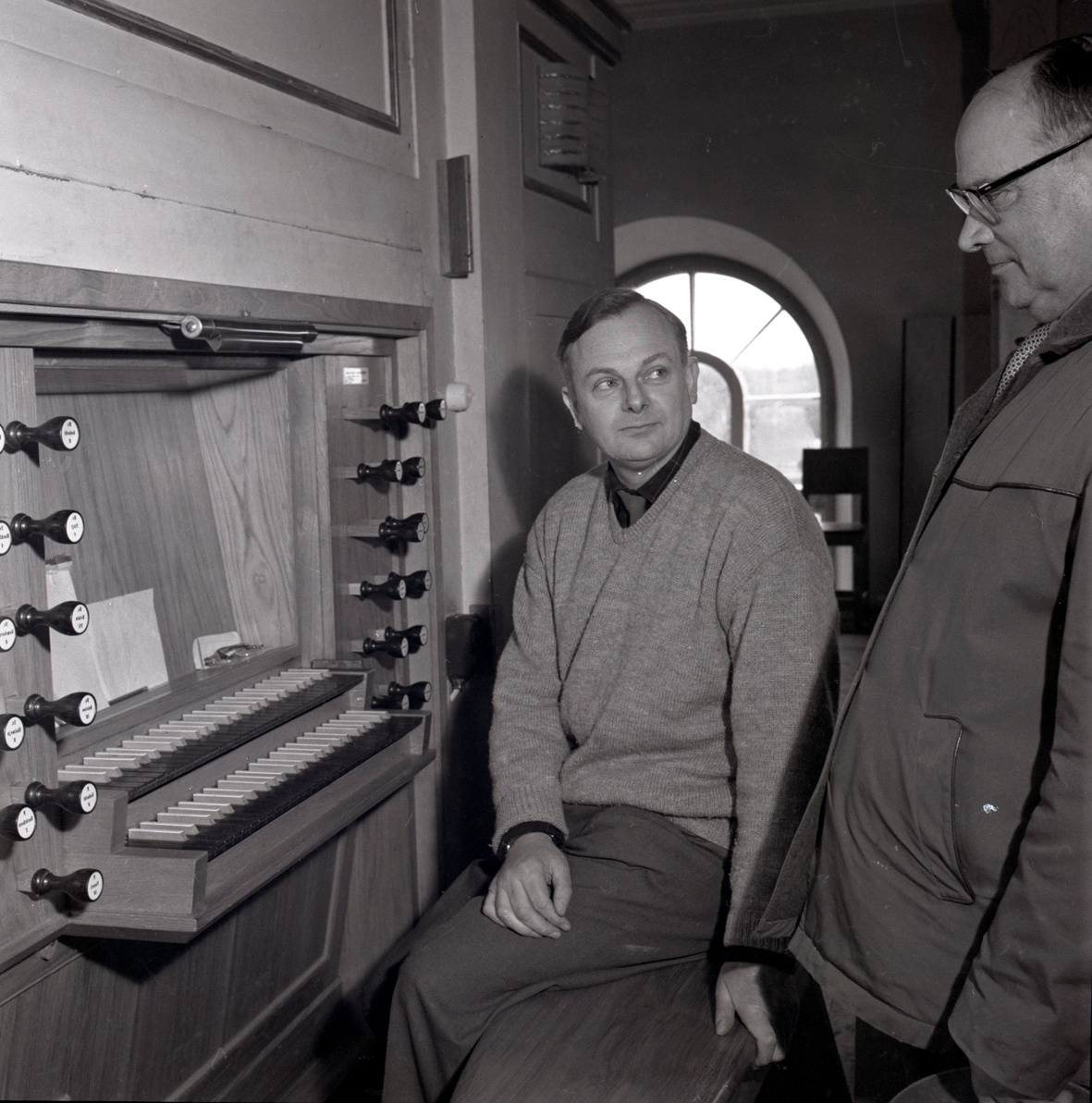 Orgelbyggaren Troels Krohn från Fredriksborg, Hilleröd, vid orgeln.