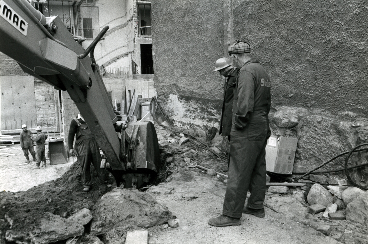 Inför utbyggnaden av hotell Witt. Grävning med grävskopa.