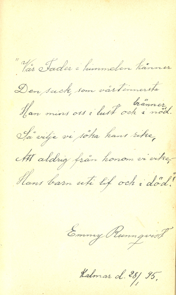 Sida med poesi ur Lilly Sahlbergs minnesalbum.