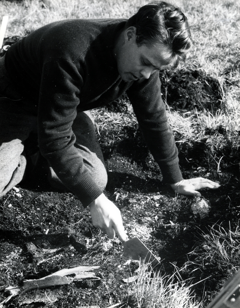Titel: Ulf Erik Hagberg vid utgrävningarna av Skedemosse.