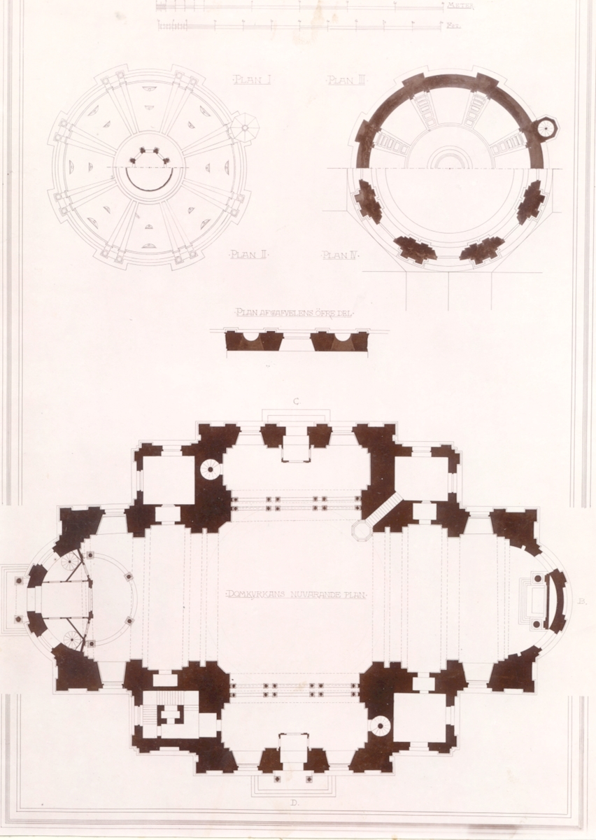 Ritning av Helgo Zetterwall 1831-1907, förslag till kupol på Kalmar domkyrka.