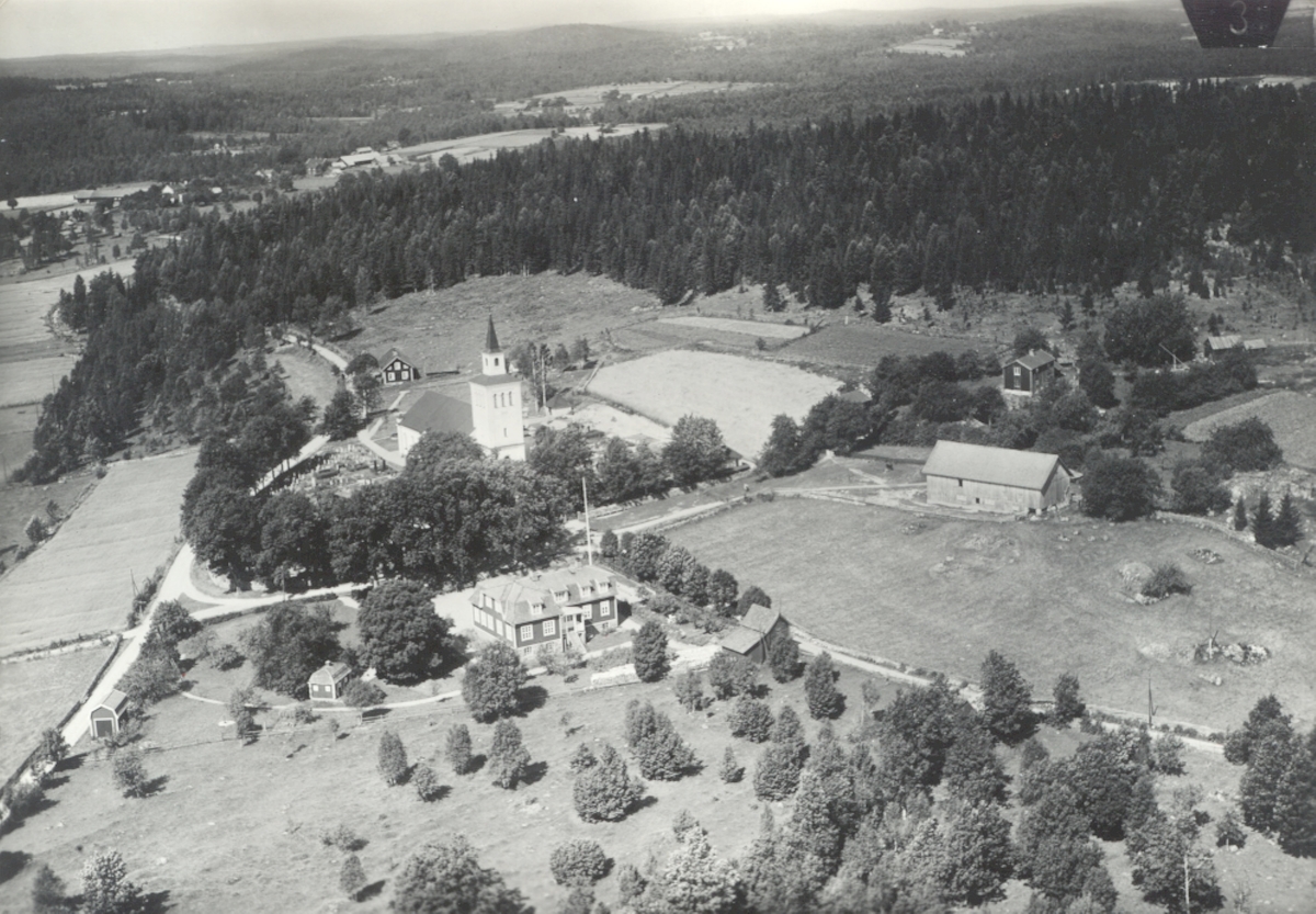 Flygfoto över Lönneberga kyrka.