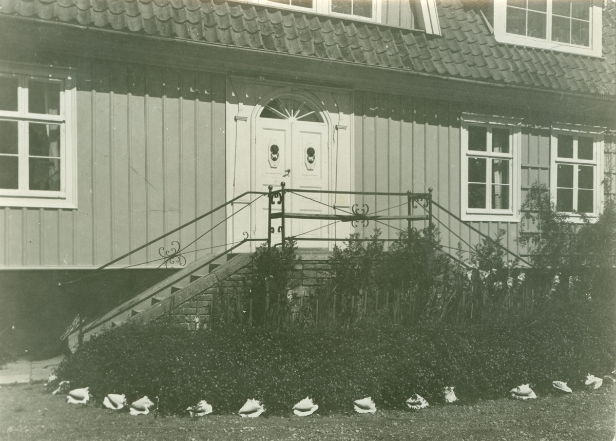 Rälla gård. Fritrappan av kalksten med smitt räcke. Dörrar och omfattning skurna i trä och vitmålade.