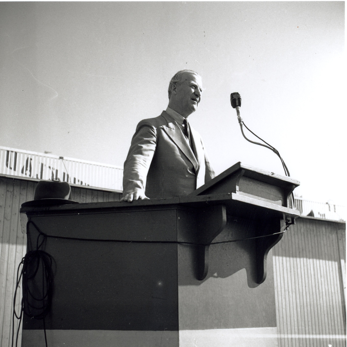 Högalids rektor Thorbjörn Wennerberg inviger hantverksmässan i Kalmar den 21/6 1947.