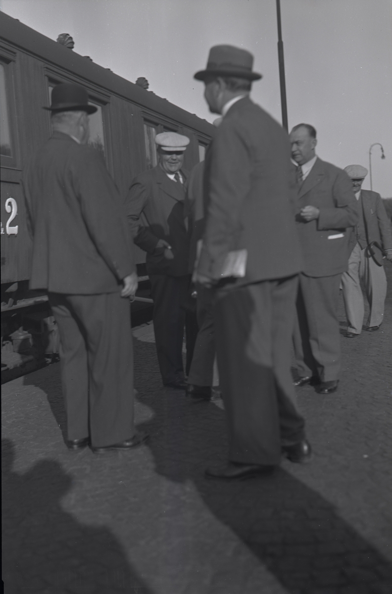 Män på perrongen på stationen. Publicerad i tidningen Barometern 1938.