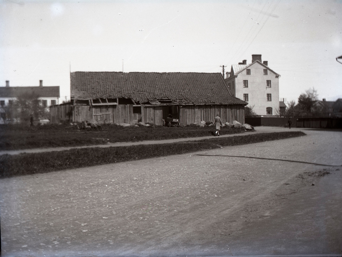 Huset till vänster, ödelagt genom eldsvåda. Det andra med gavel mot kameran, södra vägen 29, numera rivet.