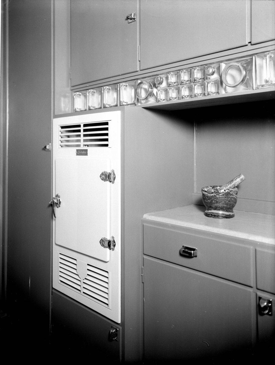Bild på köksinredning. Enligt Walter Olsons journal är bilden beställd av Elektrolux ifrån Stockholm.