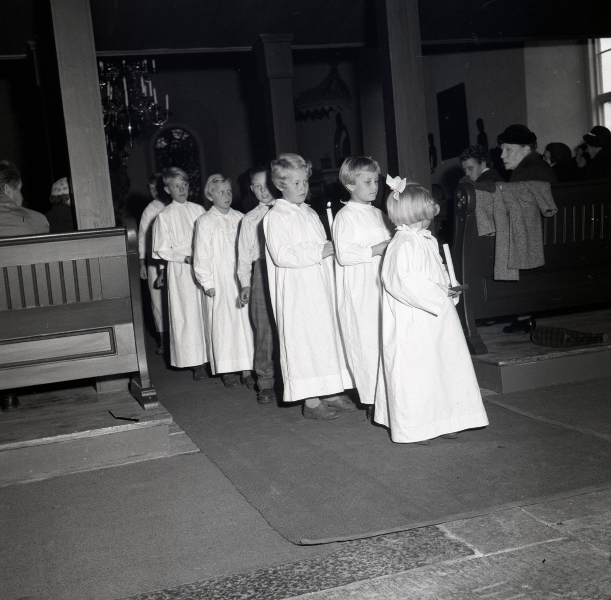 En procession i samband med att kyrkvaktmästare Gustav Svensson avgick den 1 november 1958.