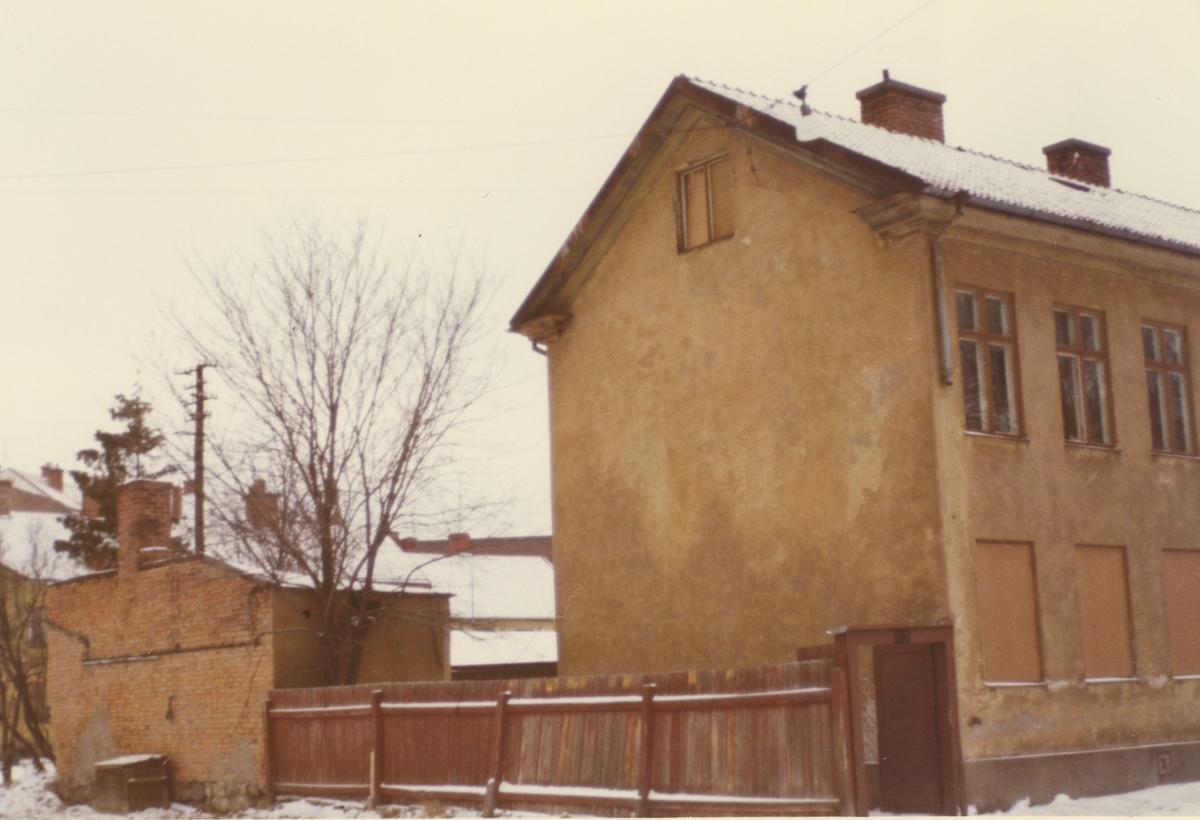 Bostadshus med putsad fasad i k Laxen, tomt nummer 1. Bilderna är tagna inom ramen för Kalmar kommuns inventering av stadens bebyggelse 1974.