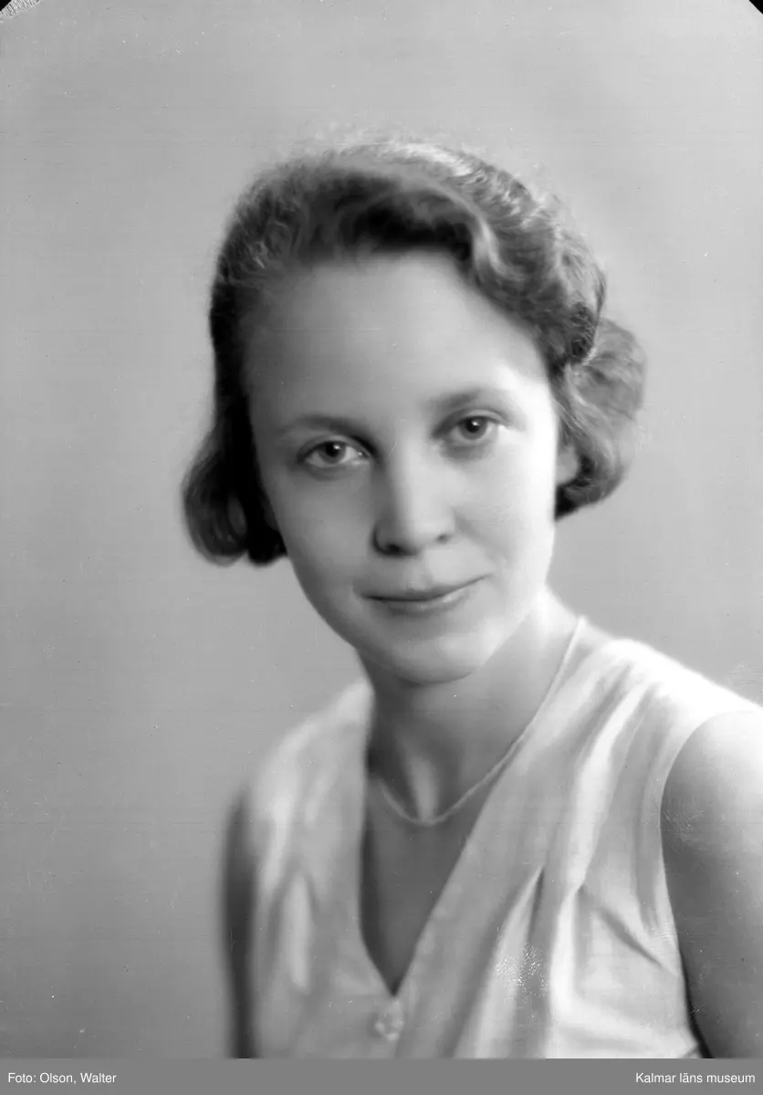 Ateljébild på en kvinna. Hon ar ett halsband och en klänning på sig. Enligt Walter Olsons journal är bilden beställd av fröken Karin Trolle ifrån Storgatan 16.
