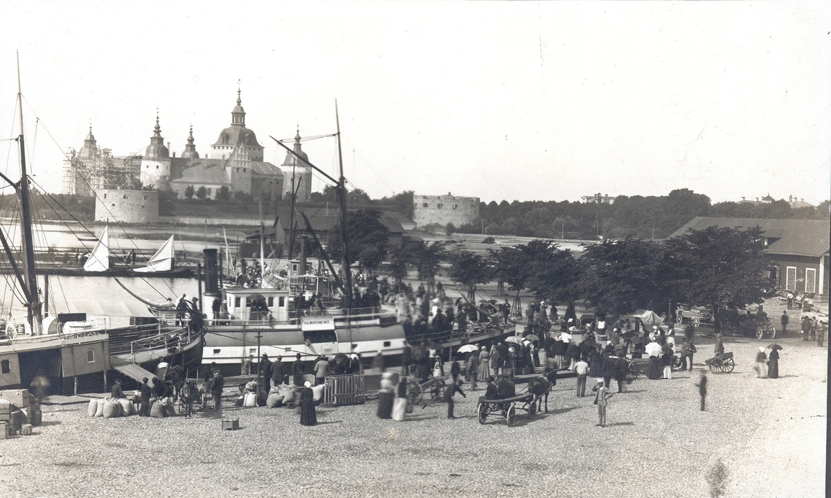 Fiskförsäljning vid Ölandshamnen. Kalmar slott i bakgrunden.