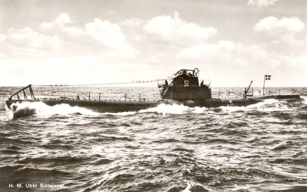 H M Ubåt Sjölejonet. Sjösatt 1936. Deplacement i övervattensläge 580 ton. Fart i övervattensläge 16 knop. Bestyckning: lv-pjäser och torpedtuber. Systerbåtar: Dykaren, Sjöbjörnen, Sjöborren, Sjöhunden, Sjöhästen, Sjöormen, Svärdfisken och Tumlaren.