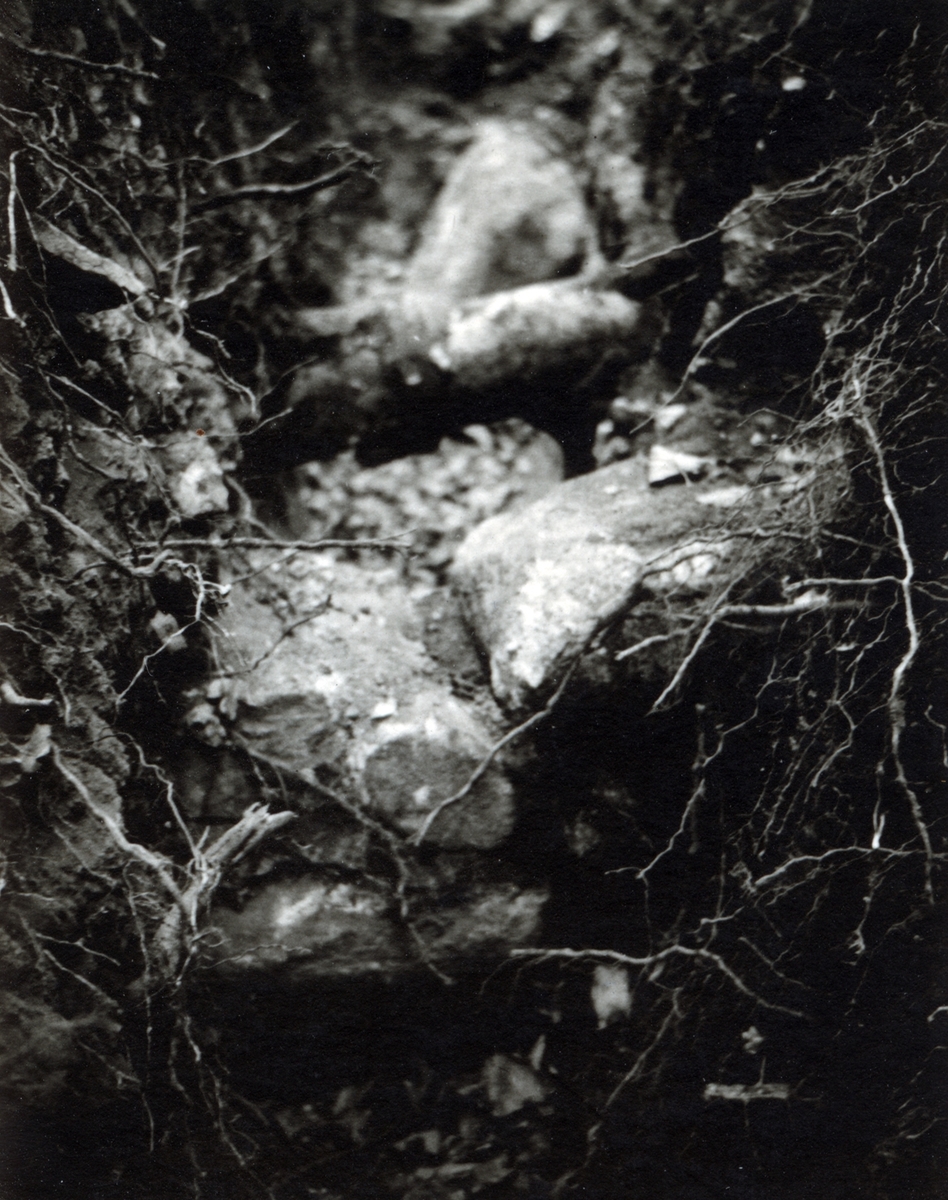 Murrest cirka 4 meter sydost om trappan. (Knappt synlig, större gråsten).