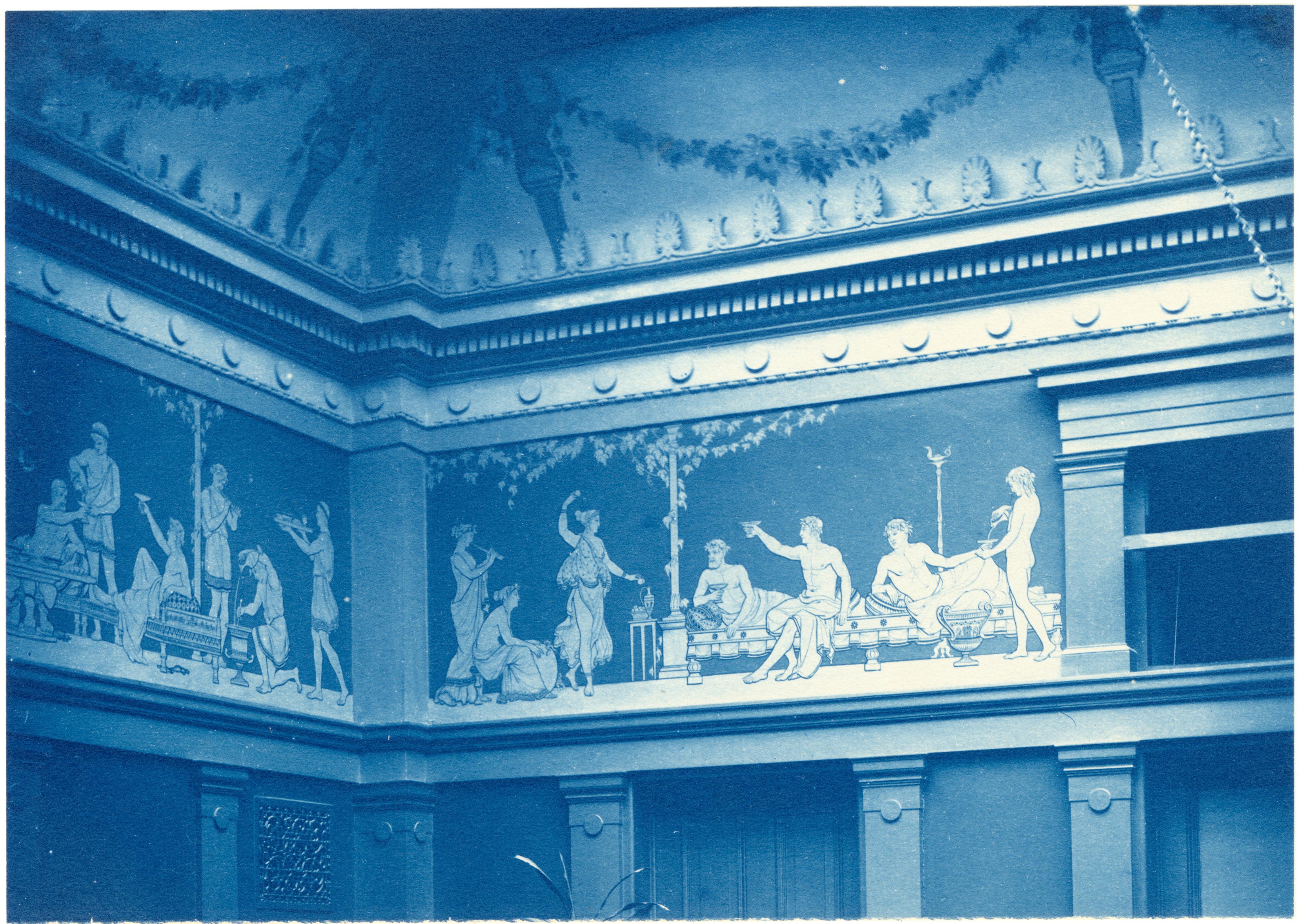 Interiör med väggfris från Curmans villa. Byggnaden inspirerades av arkitekt Karl Friedrich Schinkel och uppfördes 1880-81. Det är i romerskt lantstil.