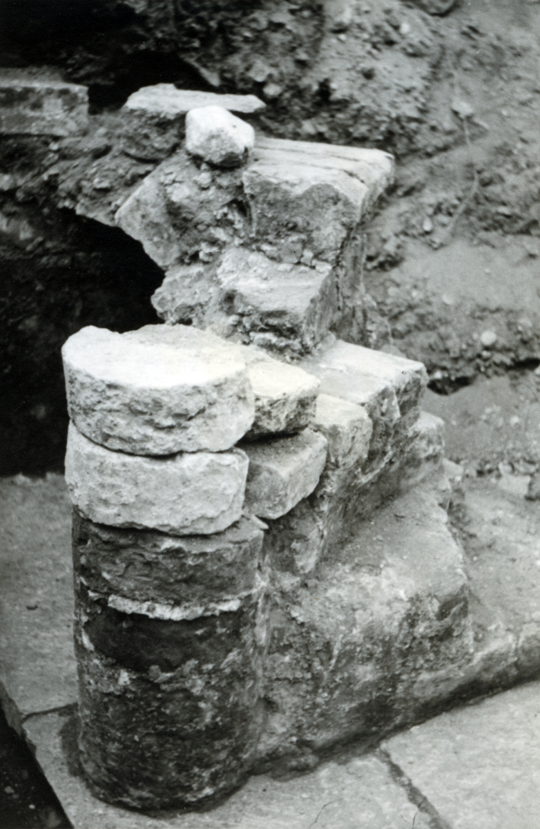 Den här bilden visar en trappa strax innanför gamla grinden vid vaktmästarebostaden 1942.