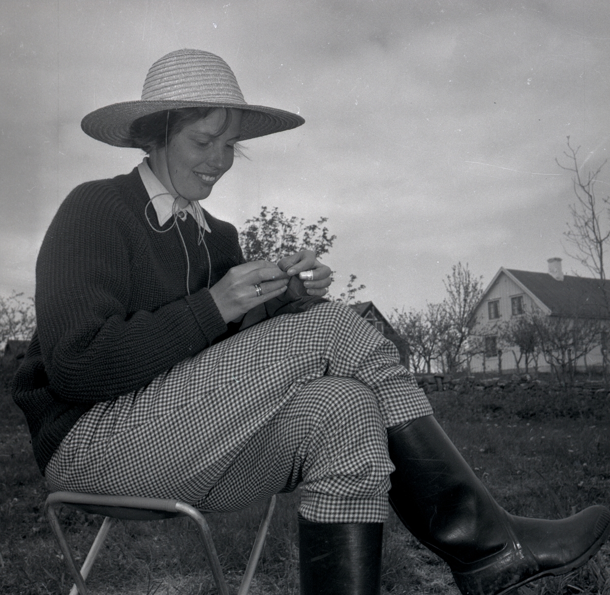 En kvinna i samband med en arkeologisk utgrävning vid Nybyåsen 1/10 1958.