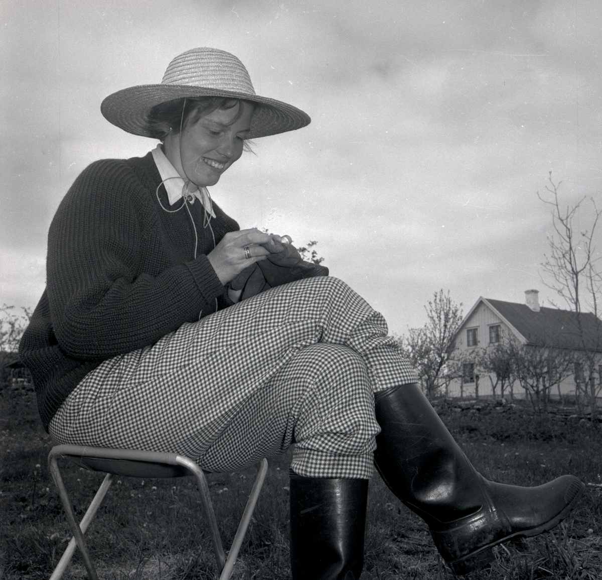 En kvinna i samband med en arkeologisk utgrävning vid Nybyåsen 1/10 1958.