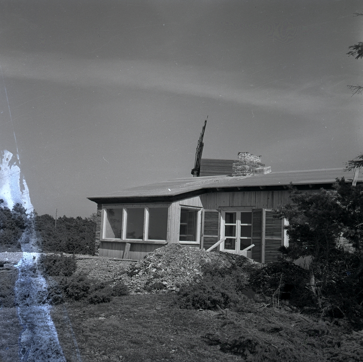 En bild tagen på en byggnad i samband med att landshövding Ruben Wagnsson besöker Persnäs, Gillberga stenindustri och Neptuni Åkrar.