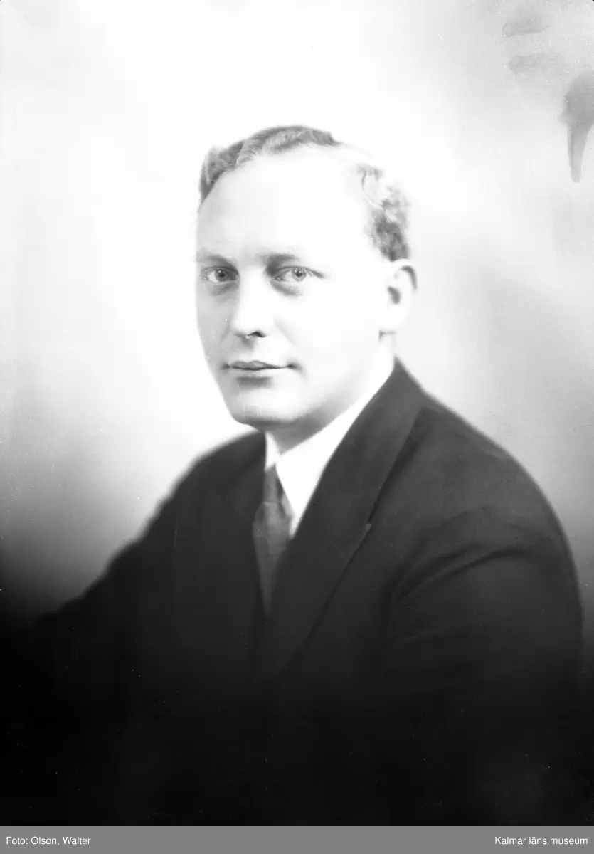 Ateljébild på en man. Enligt Walter Olsons journal är bilden beställd av R Nordfeldt ifrån Palmolive AB på Gävlegatan 12 i Stockholm.