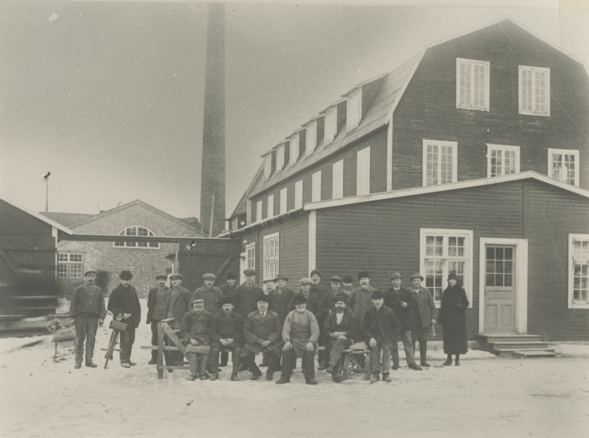 Anställda vid Nybro träförädlingsfabrik och ångkvarn, Fabriksgatan.