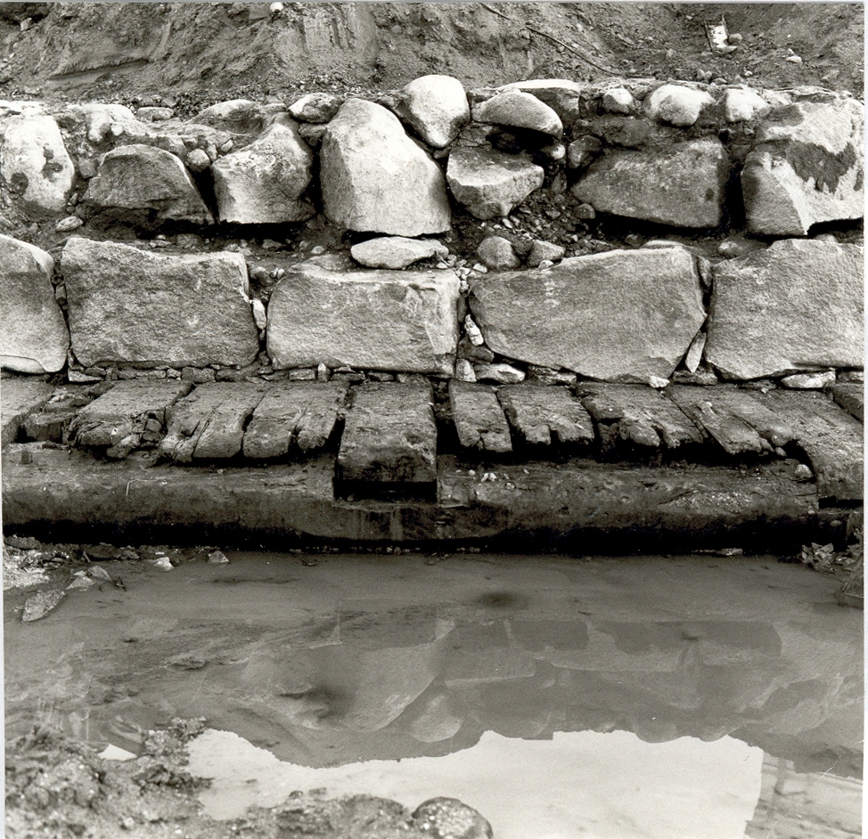 Arkeologisk utgrävning inför byggandet av nya landstingshuset. Bastionen Carolus Nonus. Bastionen och "plankgång" i profil.
