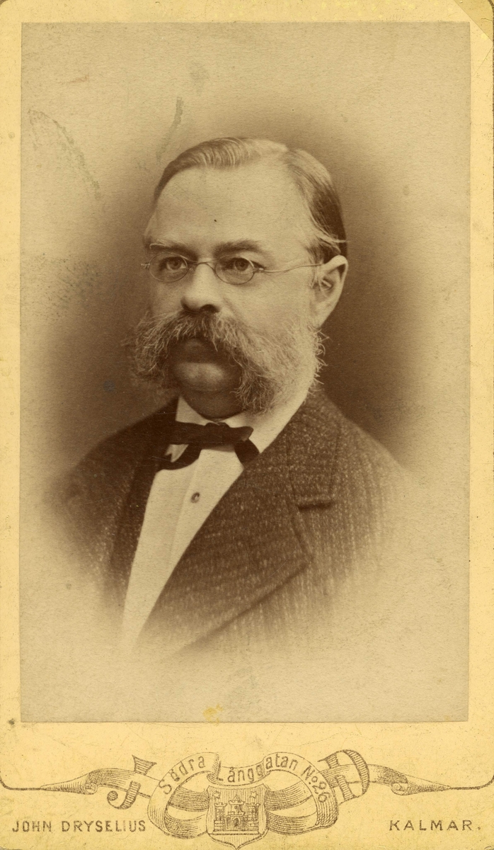 Porträtt av rektor Johan Gustaf (Gösta) af Geijerstam (1831-1894). Rektor för folkskolelärarinneseminariet och folkskoleinspektör. Gift med Alma Augusta Catharina Möller. Far till författaren Gustaf (1858-1909), byråingenjören Karl Johan (1860-1899) och läkaren Gustaf Emanuel (1867-1928).