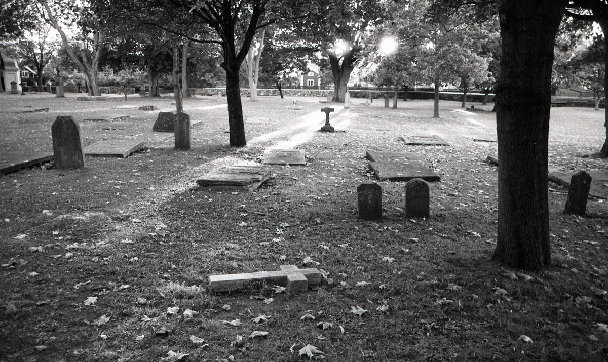 Titel: Gamla kyrkogården är Kalmars äldsta bevarade kyrkogård. Den anlades under 1200-talets första hälft då Bykyrkan, eller St Nicholai kyrkan som den också kallades, började byggas. Kyrkan och kyrkogården låg mitt i det medeltida Kalmar vid stadens torg. Vid den här tiden hade Kalmar vuxit till en av de viktigaste handelsstäderna i Sverige. Närheten till gränsen mot Danmark, idag gränsen mellan Småland och Blekinge, gjorde staden till ett viktigt fäste. På Gamla kyrkogården finns idag stenar som markerar var kyrkan stod fram till 1670-talet, då den sprängdes. Då var Domkyrkan på Kvarnholmen i stort sett klar och stadens centrum hade flyttats dit. Kyrkogården blev dock kvar och användes fram till 1860-talet då Södra kyrkogården, intill slottet, stod klar. Det gula gravkoret ovan byggdes för lektor Johan Stagnel, död 1795, och hans maka Anna Margareta Botin, död 1773. (Uppgifterna är hämtade från Svenska kyrkan.)