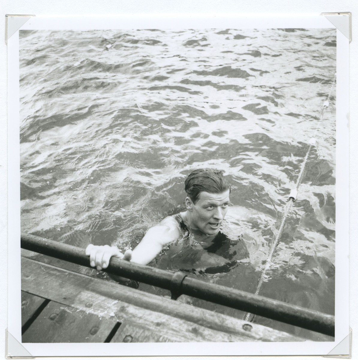 En deltagare i SM i simning, som 1946 hölls vid Långviksbadet i Kalmar.