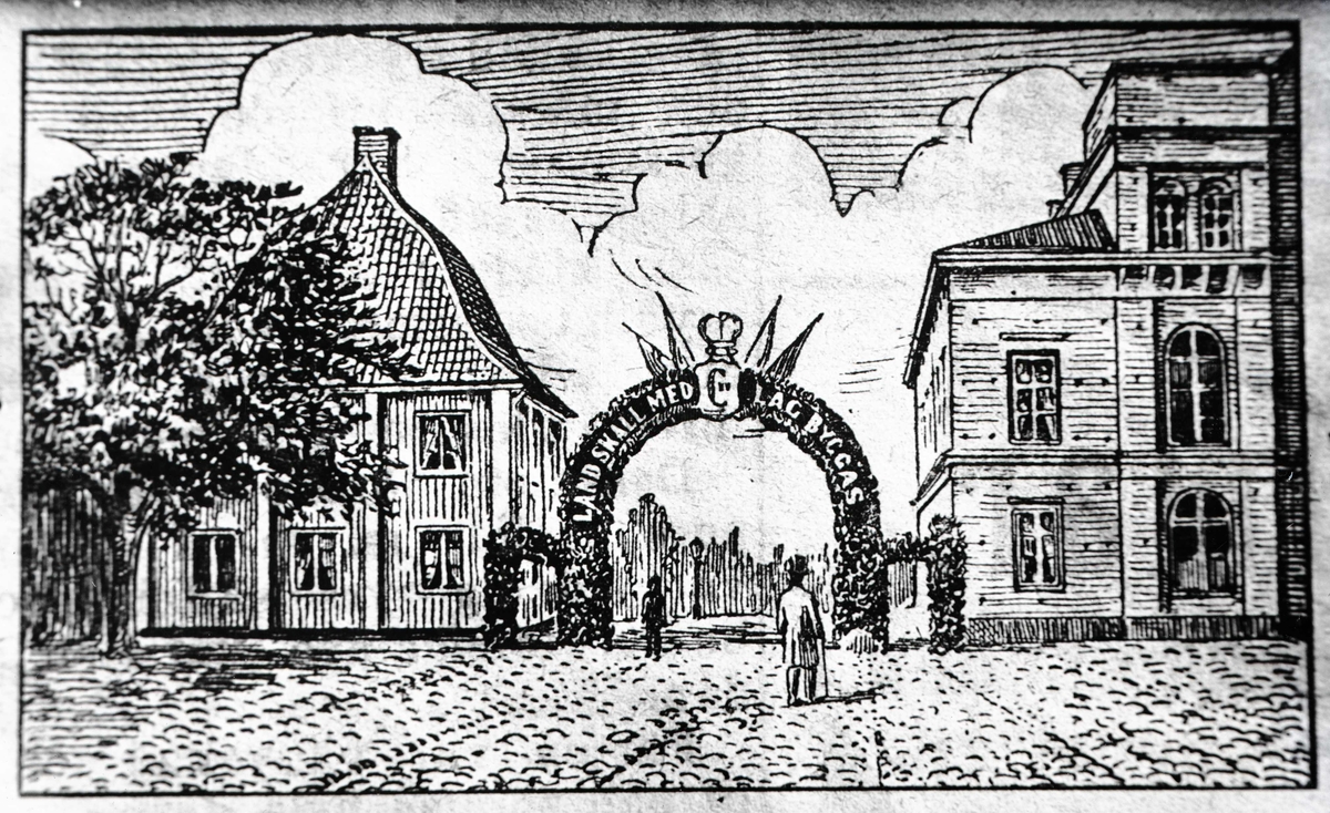 Mellan nya Teatern och kockska huset reste sig den äreport, som byggts till ära för Carl XV, då han i September. 1864 besökte Kalmar.