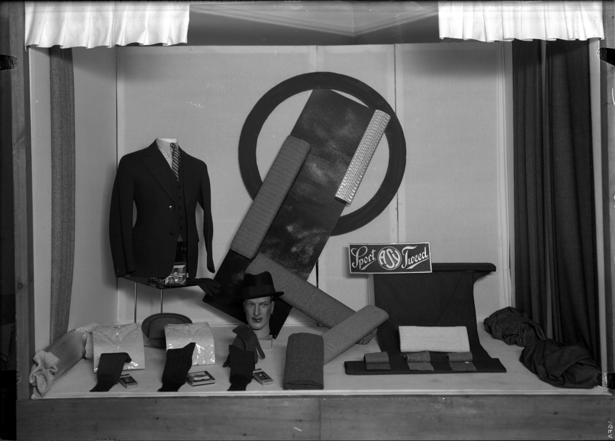 Skyltfönster till en herrekipering. Bilden är beställd av Handelsinstitutet.