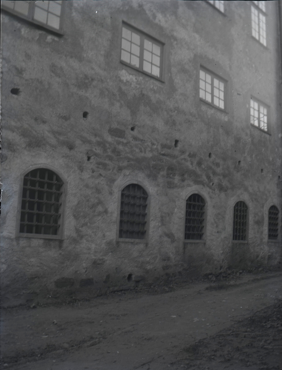 Yttre borggården av Kalmar slott. Norra fasaden med det forna kvinnofängelsets fönster i andra våningen.