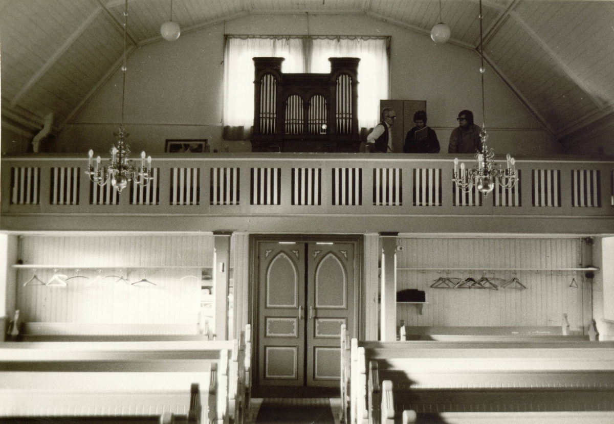Titel: Bilder från dåvarande Metodistkyrkan, senare Katolska kapellet. Byggnaden uppfördes på 1830-talet och ombyggdes 1868 till Kalmar metodistförsamlings kapell (S:t Pauls församling) och hade då namnet S:t Pauls kyrka. Byggnaden såldes till Katolska församlingen 1987. Altarskåpet är därefter utfört av Sven-Bertil Svensson.