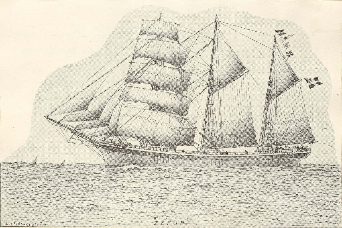 Teckning av J. H. Götherström. Se "Vår gamla segelflotta XIX, Oskarshamnstidningen 22/3 1935.