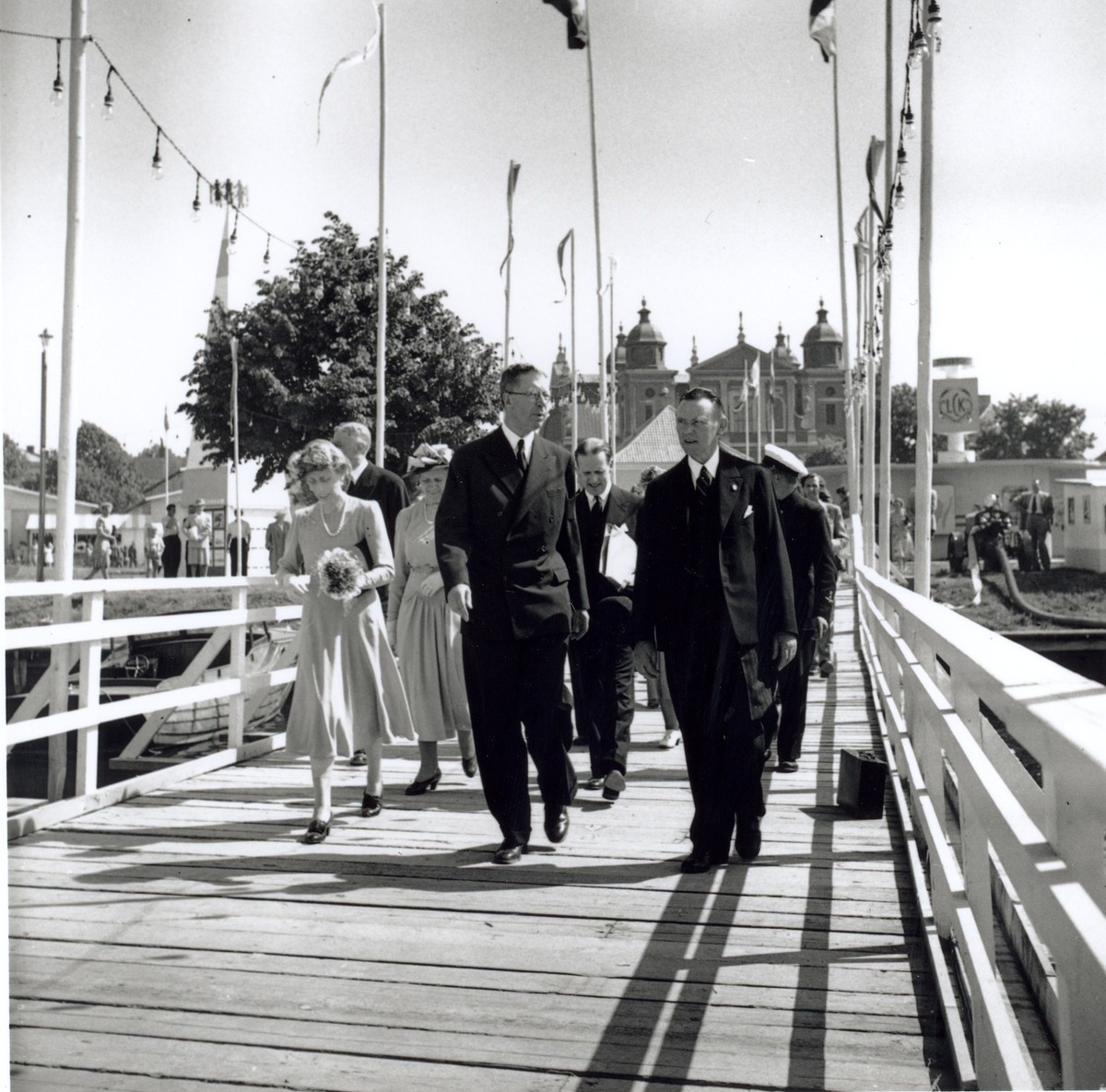 Kronprins Gustaf Adolf och drottning Louise på besök i Kalmar i samband med en hantverksmässa.