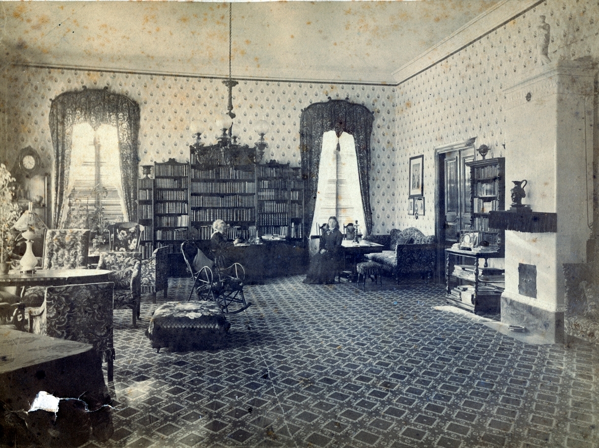 En åldrad Cecilia Fryxell med sällskapsdam.